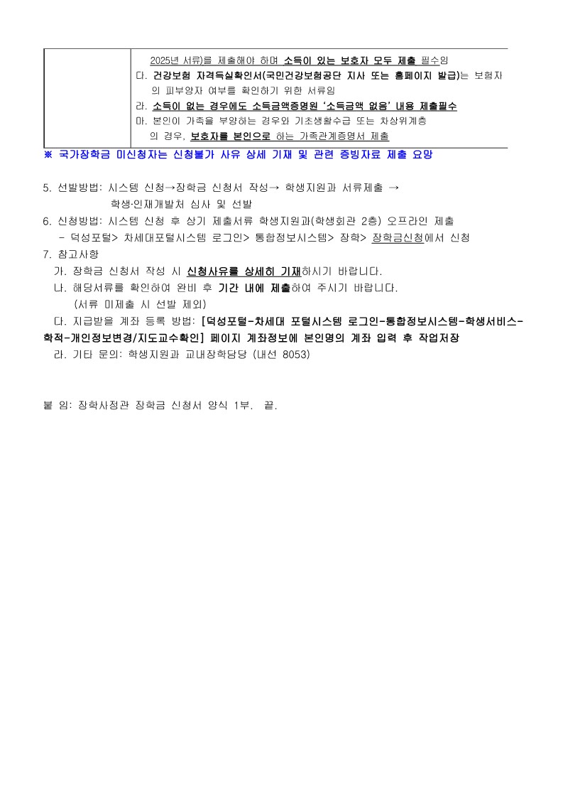 2025학년도 2학기 장학사정관 장학금 신청 안내