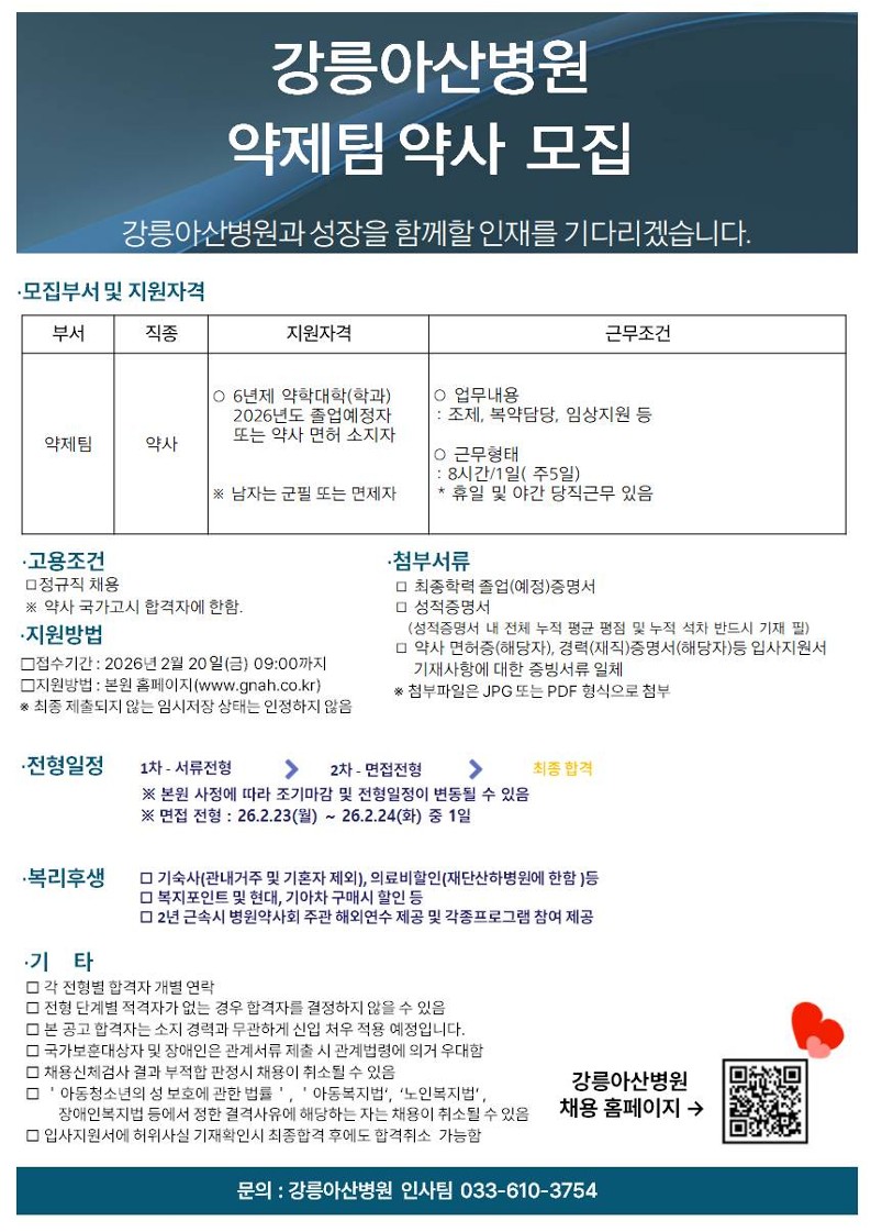 강릉아산병원 약사 모집